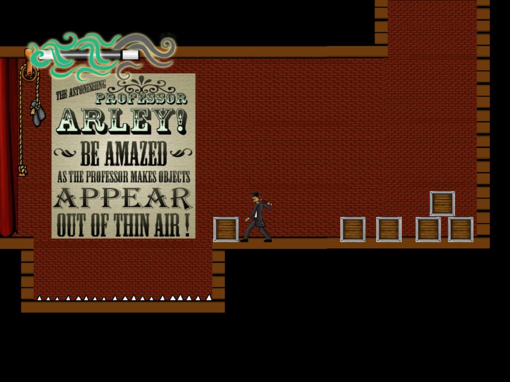 Vaudeville-styled posters assist players in the first level, helping them learn the mechanics as the design of the level forces them to do so.
